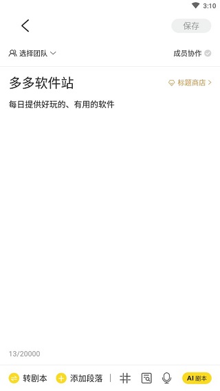 打开,登录后点击首页上方“团队剧本”,再点击右边的小加号进入,点新建团队,开通团队会员,选择套餐后,即可开通。