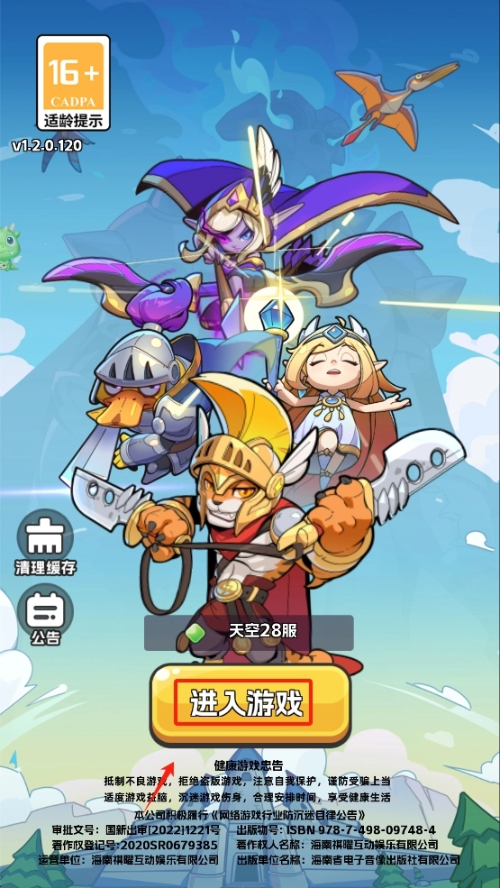 1、进入游戏登录界面后,点击下方的“进入游戏”按钮,即可进入游戏。