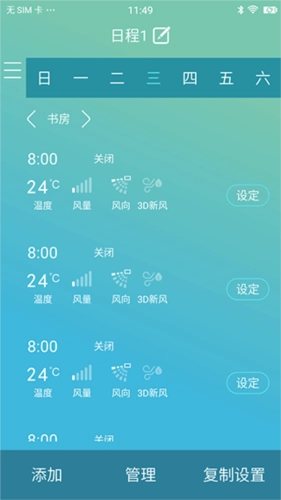 5、支持管理设定的日程,包括添加、复制设置、删除设置等,设备自动按照设置的日程进行运行;