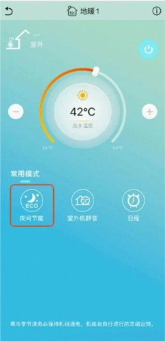 Step1 :进入“金制空气”地暖控制页面,点击【夜间节能】按钮