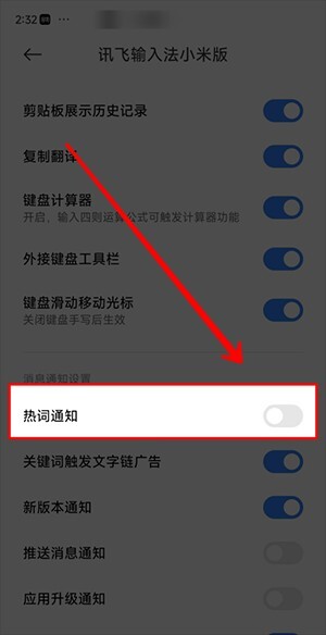 3、在新的页面中将【热词通知】的开关关闭即可。