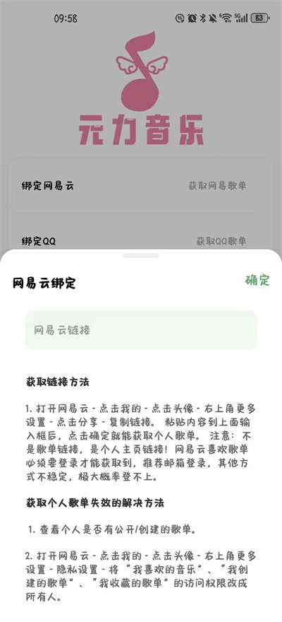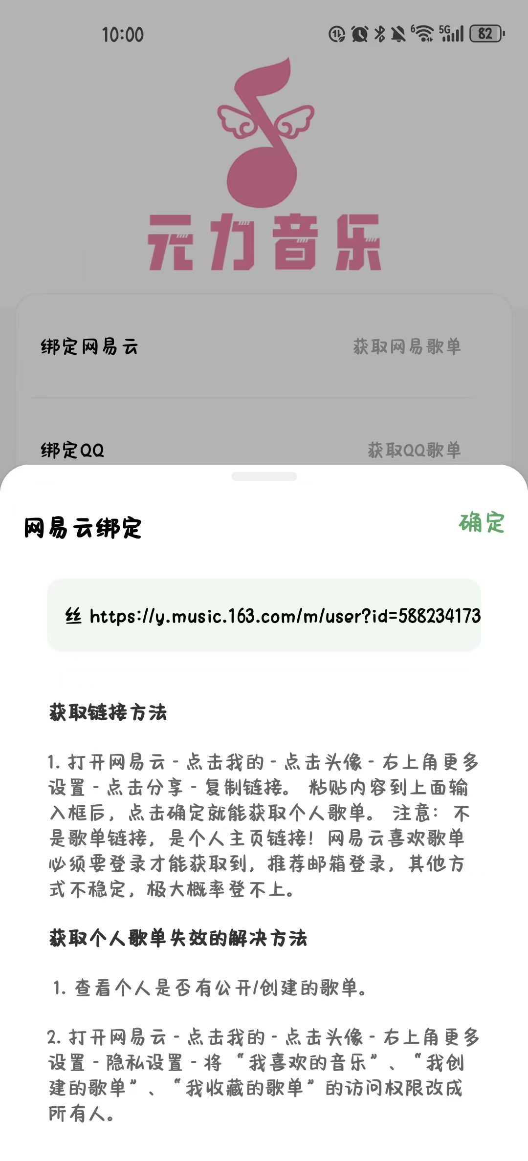 4、在导入的过程中一定要注意,不是歌单链接是个人主页链接,网易云喜欢歌单必须要登录才能获取到;