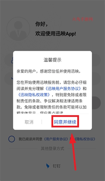 在温馨提示界面点击同意并继续