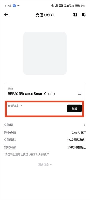 4、点击需要充值的地址。