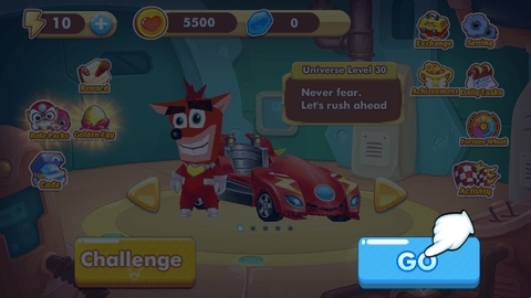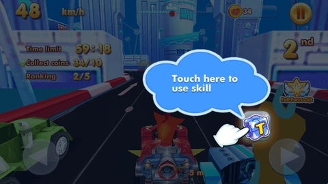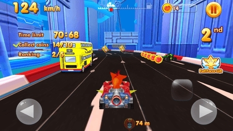 2、这款竞速游戏的核心玩法是道具对抗赛,此外还包含闯关模式与多人对战模式等玩法。
