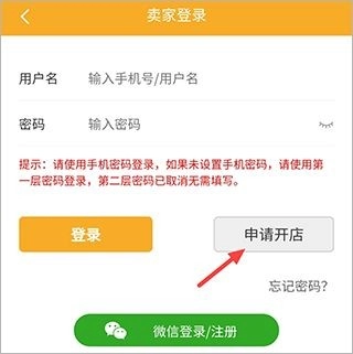 1. 开启软件后,在界面中点击“卖家”-“申请开店”。