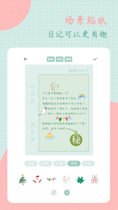 1、线上拥有海量精美贴纸可供使用,为你的日记增添色彩,告别单调,轻松打造小清新风格的日记界面。