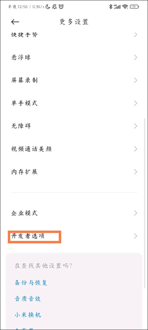 3、进入开发者模式之后找到系统设置,选择开发者选项进入。