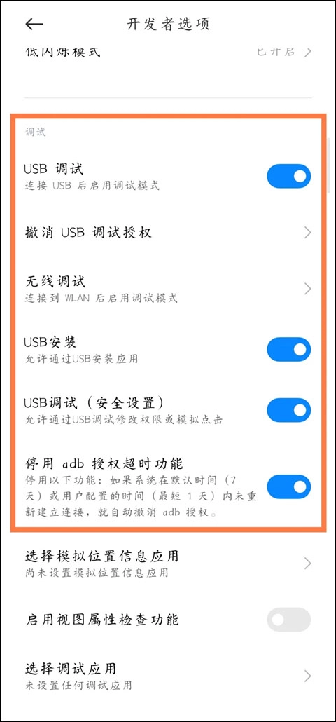 4、然后将usb调试打开。