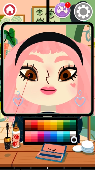 1. 进入游戏界面后,映入眼帘的是角色脸部,其下方摆放着色彩斑斓的调色板等化妆道具。此时,只需点击调色板,就能挑选出自己心仪的颜色。