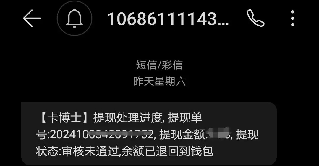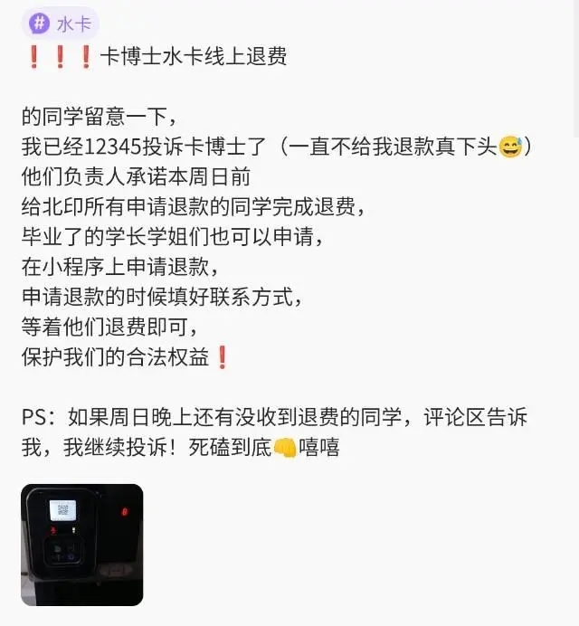 ❗❗注意啦!007 1,卡博士水卡有更新。10.13 周日统一办理退费。要是大家收到审核不通过的短信,别担心,这是正常的,不用理会。负责人表示先把相关信息都打回,明天后勤处会发通知告知具体操作方式。大概是在公众号上操作退费,不是小程序哦。所以大家不用在小程序反复申请,审核不通过是水卡公司的操作,这样是为了在公众号上退起来更方便。PS:要是大家有任何情况,记得及时评论!我看到就会回复,咱们一起解决问题!