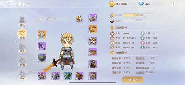 属性点。 不同职业属性加点和玩法不同,慎重!