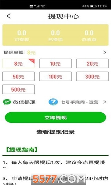 3、满1元即可申请提现,10元及以下提现即时到账,10元以上需经过24小时审批后到账。