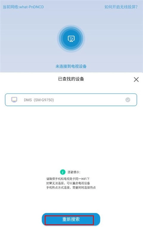 2、然后软件会自动搜索处于同一wifi下的电视