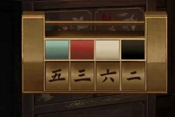 出门调查一下左边的房间,中间的琴弹一下就会坏掉,不要碰小心被碰瓷,左边床侧面调查一下是五行和五音的对应图,再调查床桌拿走黑色棋子,旁边绣花坐垫点一下下面是个暗格,调整一下对应好暗格打开拿到抽屉把手和密码纸。