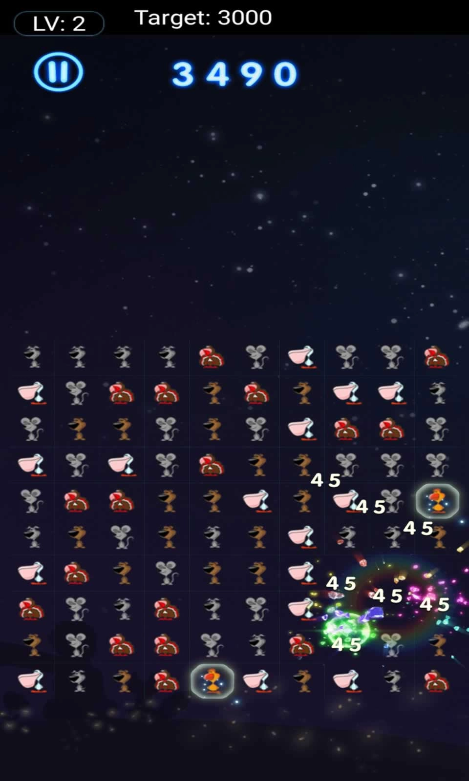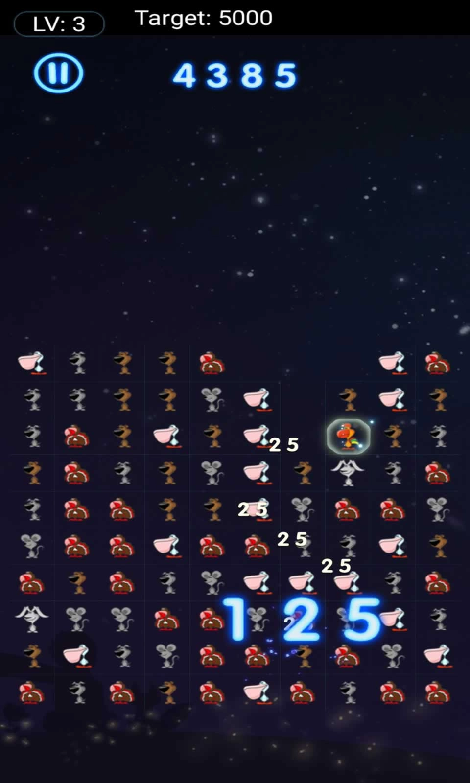 点击相邻的两只相同动物,就能马上消除并获得分数!