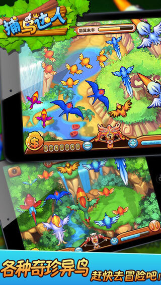 2、发射炮弹:触摸屏幕上小鸟飞行的区域,即可发射捕网炮弹。