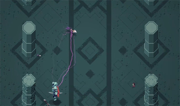 当boss成功激活,便会发动几次冲撞,还会使出一次跳跃压杀。游戏屏幕的上下左右分布着4个点火装置,只要boss压到装置,中间就会燃起火苗,不过火苗仅在BOSS压住装置时存在。角色的箭穿过火苗后会附带燃烧效果,以此来融化BOSS的冰块。当冰块融化,BOSS的大脑露出来后,它就会持续对主角发起跳跃压杀攻击,这时只要看准其落点,就能一箭将其击败。通常这个BOSS会径直朝着正下方冲撞过来,反弹之后,BOSS会压住上方的装置,待冰块融化后,玩家无需走位,拉开距离即可将其击杀。