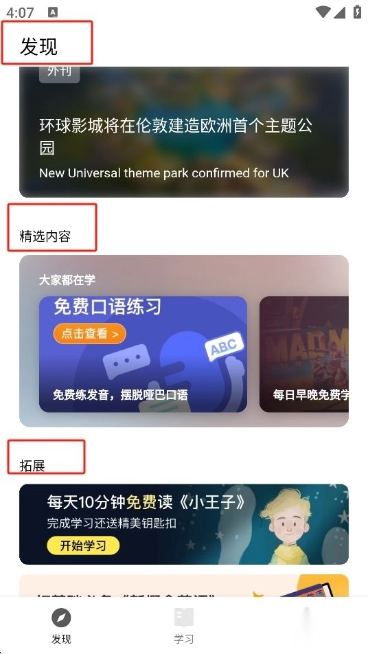 2、学习模块提供各种英语听力内容