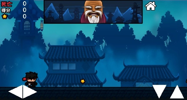 2、卡通版的忍者非常的可爱,还有一个老爷爷在上面看着你消灭障碍物。