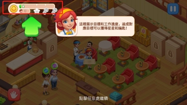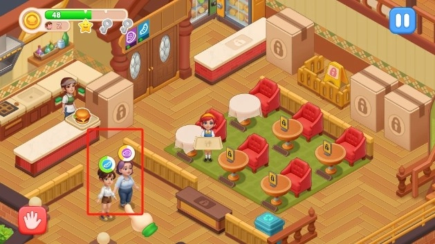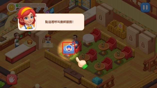 1. 进入游戏之后,我们操作点击,把顾客拖拽至餐厅的桌椅处。