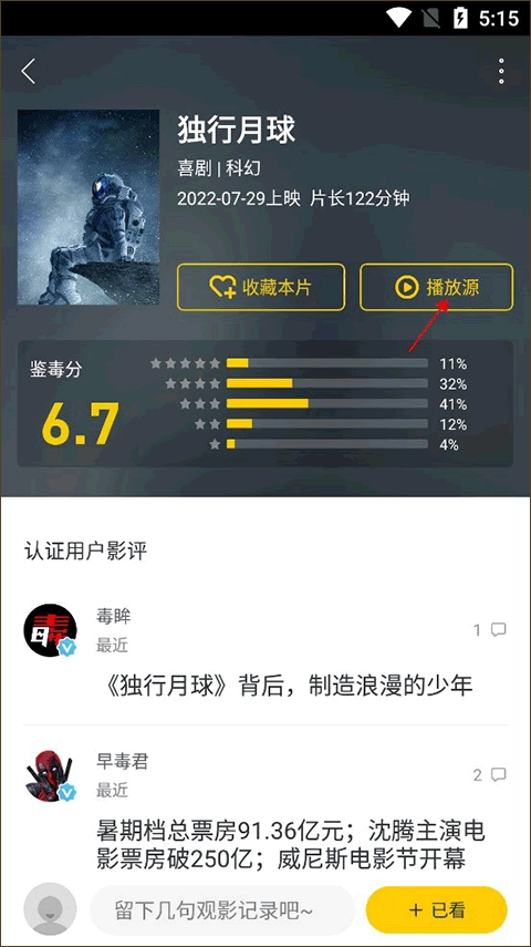 进入到该电影界面,点击箭头所指的播放源