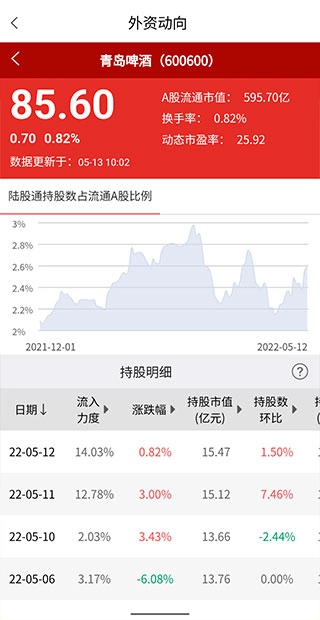 2、点击下图位置的“外资动向”图标