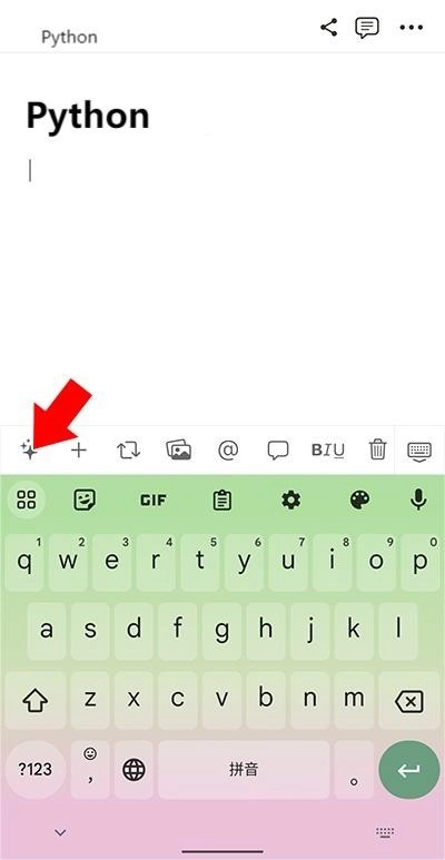 2、当用户进行在文本编辑时,工具栏会显示在输入法上方。点击工具栏中的第一个图标开始使用AI功能(如下图所示)。