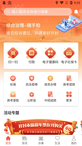 汴捷办,作为开封市政府城市门户,借助大数据、云计算、人工智能等前沿技术,把多种应用集成于一体,构建起全市统一的移动便民服务平台。该平台为开封本地居民提供政务、综合治理、公共、医疗、金融这五大类服务,让居民足不出户,就能全方位享受移动便民生活服务。“汴捷办”服务充分彰显“为民服务”的理念创新,实现858项政务服务事项“掌上办”,90%的便民服务“马上办”,极大满足开封人民群众便捷办事的需求。不仅如此,汴捷办以“服务可及”为特色,致力于打造市民服务“总入口”,凭借全新且更优质的使用体验,将服务窗口延伸至群众手中,让市民畅享城市综合服务。它着眼于打通公共服务“最后一公里”,推动开封市跨层级、跨地域、跨系统、跨部门、跨业务的协同服务,提升公共服务均等化、普惠化、便捷化水平。