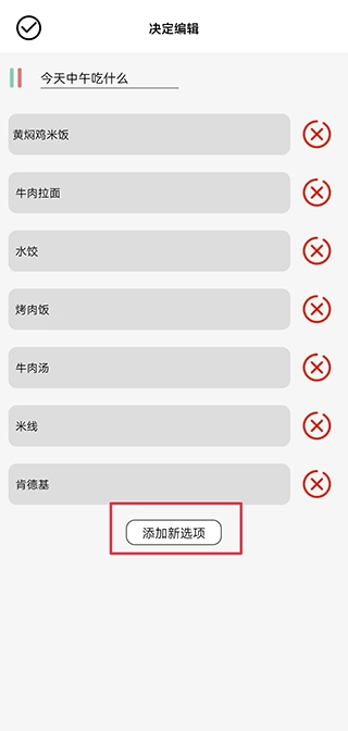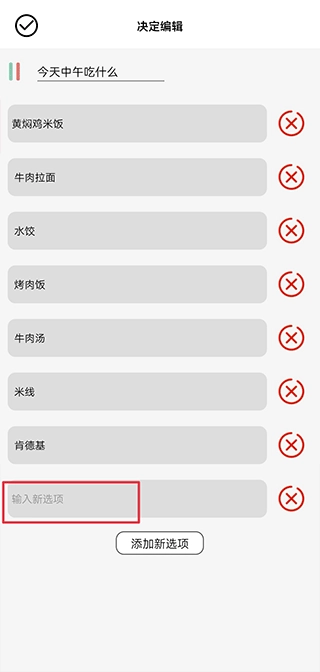 3、将犹豫不决的事项填写在上方,将预备选项填写在下方,完成后点击右上角保存即可