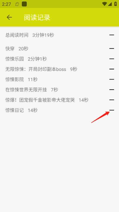 2、点击你想删除的阅读记录的右边减号。
