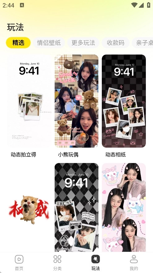 3、在玩法里面有精选、情侣壁纸、以及更多玩法可以体验