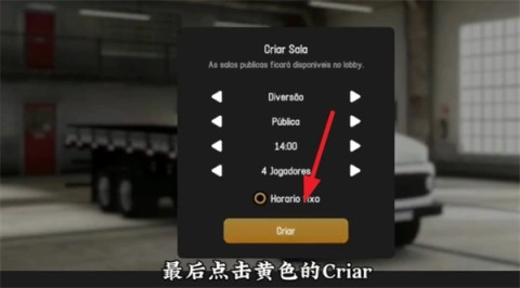 5、选择“创建房间”,设置一些基本信息,比如容纳人数,最后别忘了点击“Criar”来创建房间,邀请好友一起来享受驾驶的乐趣吧!
