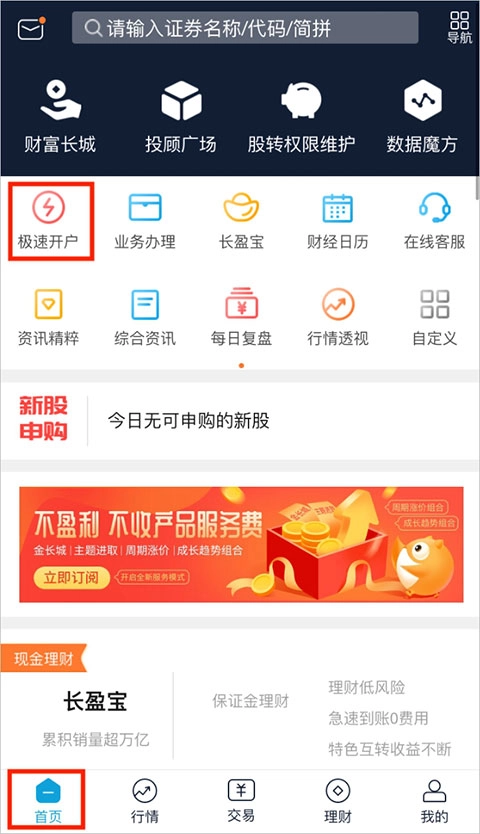 1、登录后,在首页找到“极速开户”;