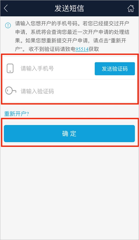 2、然后输入想开户的手机号,获取验证码即可。