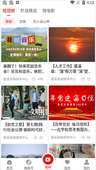 短视频、栏目精选、微电影