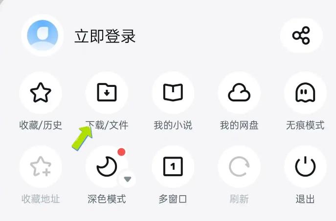 1、打开UC浏览器,在面板中点击“/文件”图标。