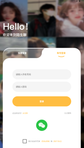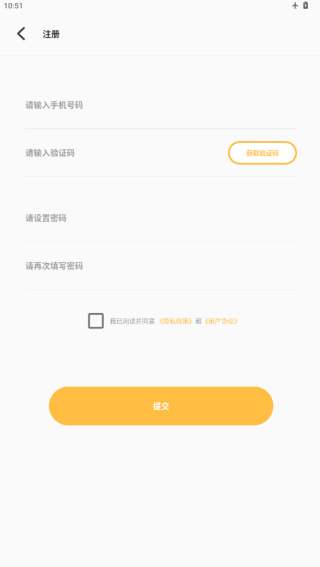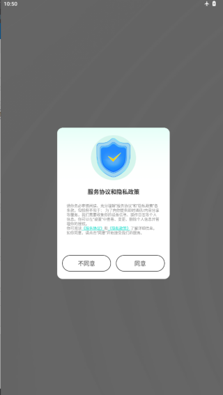 1、安装后打开软件,提示同意与否,点击同意进入注册界面;