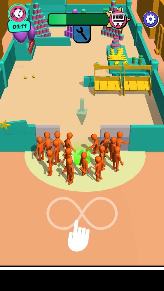 2、在商场中不断的奔跑吞噬其他小人升级你的队伍;