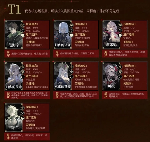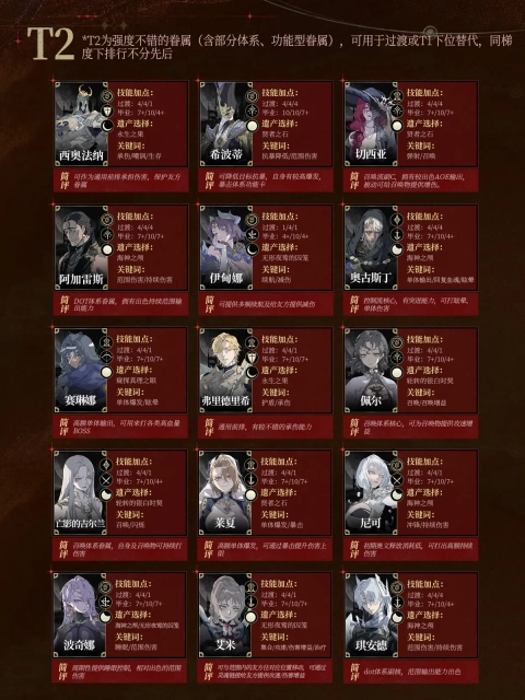 T2为强度不错的眷属(含部分体系、功能型眷属),可用于过渡或T1下位替代;