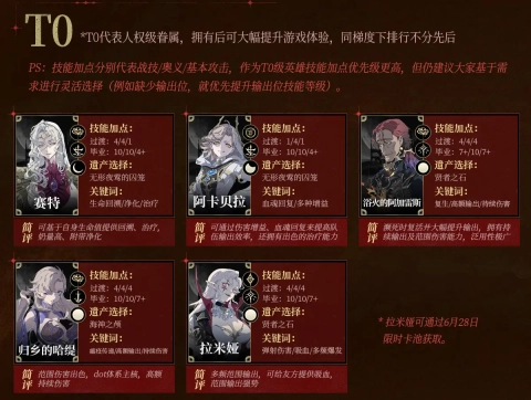 当前版本国家队的基石便是这三个角色。主C位由拉米娅担任,副C方面,可在输出型的归乡的诺亚与功能型的达尔卡罗中选择,不过达尔卡罗需等到第二个卡池才会推出。在此期间,也能够暂时选用希波蒂、范海辛、浴火的阿加雷斯、归乡的哈提、莉蜜母等输出角色作为替代。