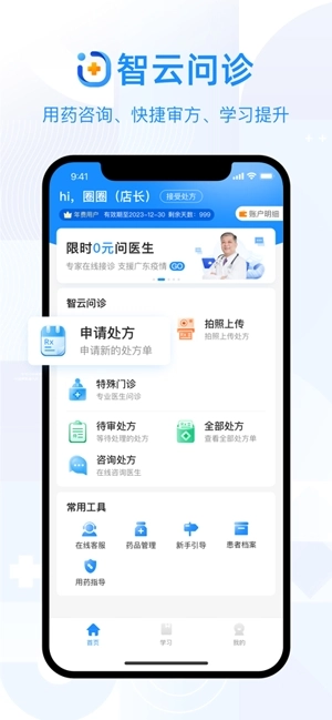 智云问诊是具备互联网医院执业资格执照的专业用药咨询问诊平台,专为药店提供服务。医生能够通过该平台与患者远程沟通,在了解患者病情、过往病史及过往用药情况后,给出用药建议。
