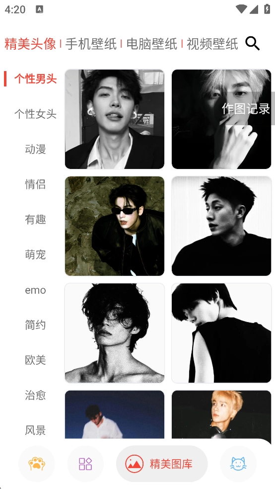 3、点击精美图库,这里还有各种头像和壁纸支持用户使用