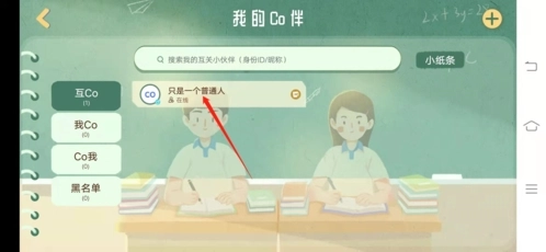 2、在我的Co伴界面;点击想要传纸条的好友;