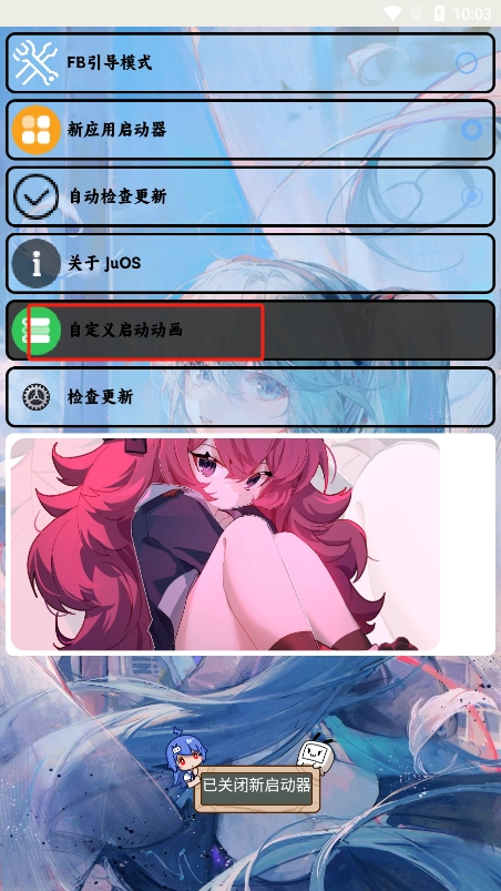 4、这里我们点击设置,选择自定义启动动画