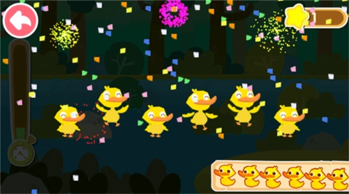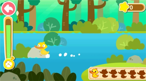 森林探险场景中需要找到隐藏的宝箱钥匙,帮助鸭妈妈找到小鸭,挖掘宝藏,获取宝贵的奖励!
