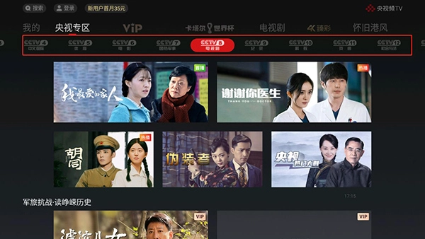 1、在电视上安装打开央视频TV版后,点击央视专区;