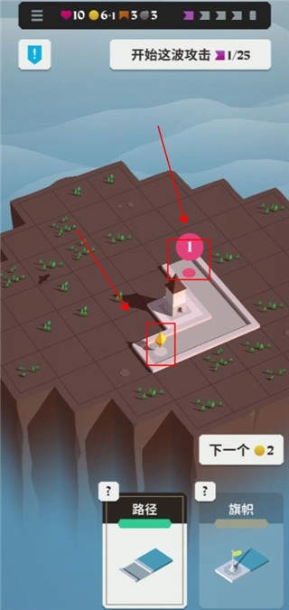 6、让点击旁边的下一个,选择炮台将其放置在防御路线上以便消灭敌人