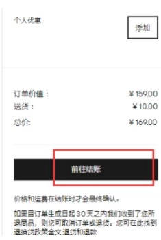 3、进入到购物袋界面,选择需要购物袋中需要购买的商品,点击前往结账。