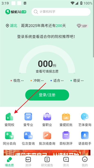 1. 开启软件,点击屏幕下方的“填志愿”选项,接着点击页面上方的“查院校”按钮。